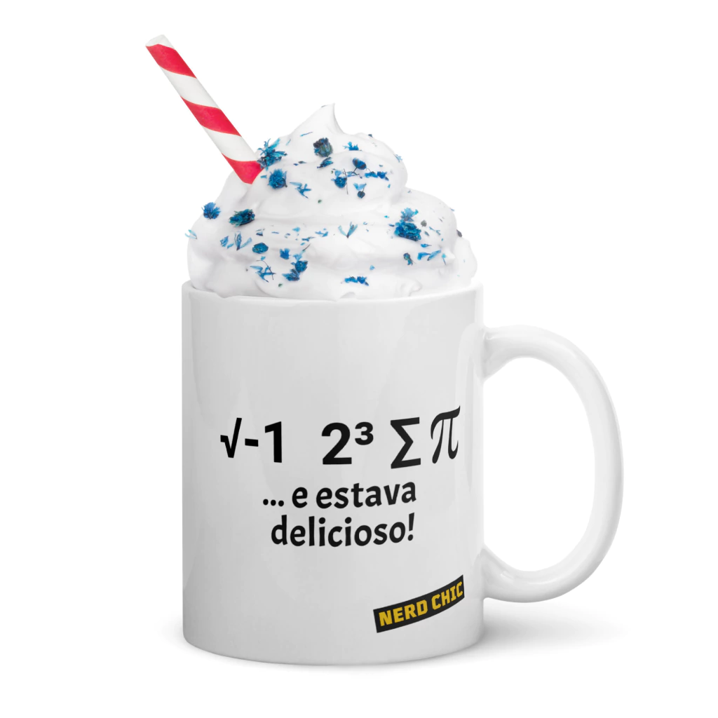 A frase "√-1 2³ ∑ ∏ ...and it was delicious!" é um trocadilho nerd: