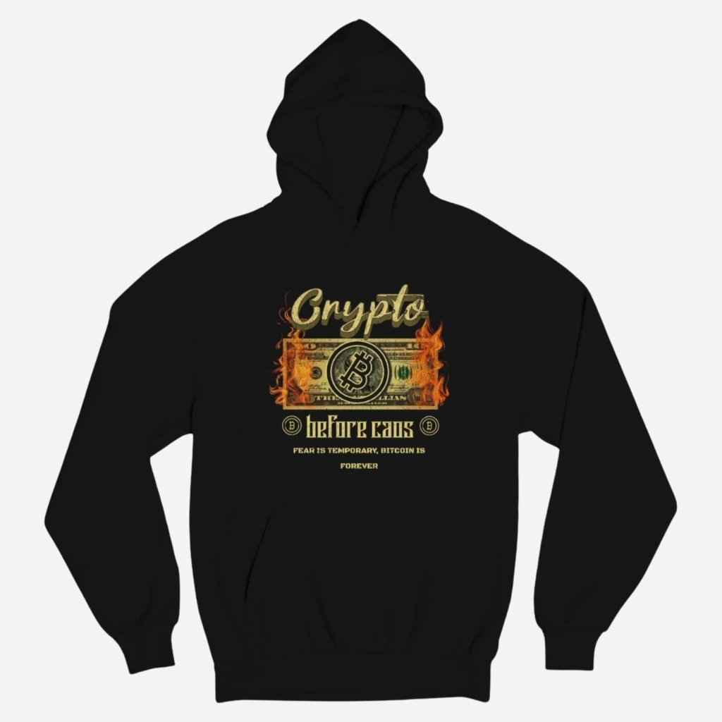 Prepare-se para enfrentar o frio com estilo e ousadia com o nosso Moletom Bitcoin - Crypto Before Chaos, disponível apenas na Nerd Chic! Com o emblemático slogan 'Fear is temporary, bitcoin is forever', este moletom não apenas mantém você aquecido, mas também o envolve na atmosfera revolucionária das criptomoedas. Feito para os entusiastas da tecnologia e da moda, este moletom é uma declaração de confiança no futuro descentralizado das finanças. Abrace o conforto e a tendência com o Moletom Bitcoin da Nerd Chic - onde moda e inovação se encontram!